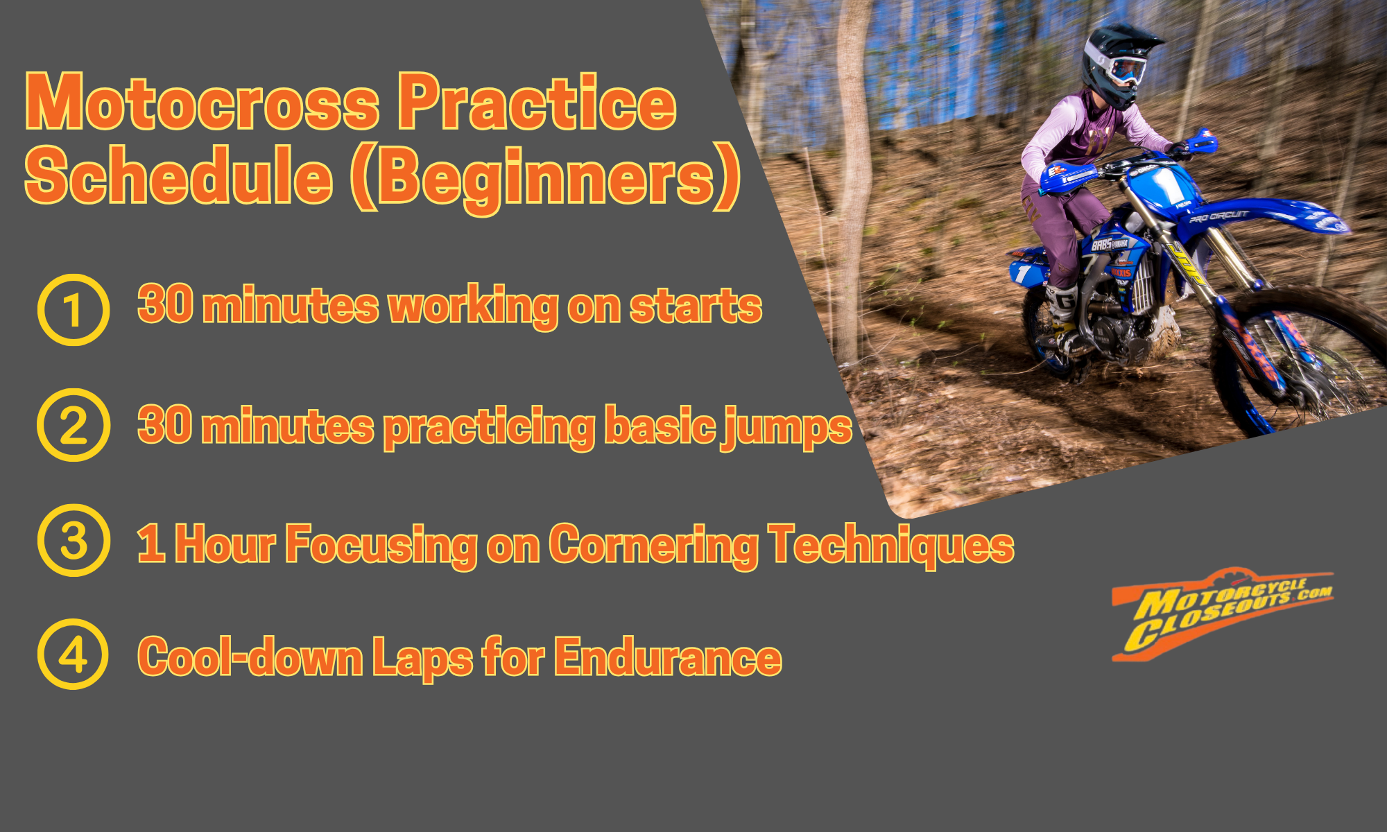 Once you are proficient in these, then continue advancing to more challenging features. Regular practice sessions, ideally 2-3 times per week, will accelerate your skill development while building the physical fitness motocross demands.